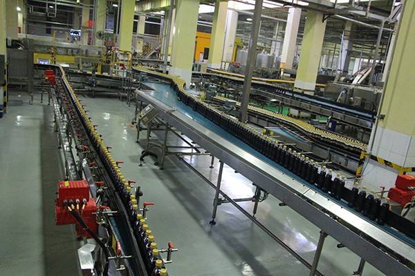 南京恒昌在PET高速線生產設計方面擁有豐富的經驗,已經設計制造安裝了多條52800/小時的PET碳酸線,恒昌提供了從灌裝機到碼垛的全套輸送系統,包括輸瓶線,先進先出緩沖平臺,無壓力輸送,輸箱系統,垛板輸送等。