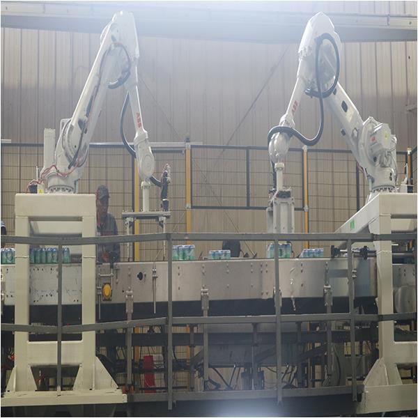 適用于方形磚包和玻璃瓶的緩沖輸送平臺,產能可達30000BPH.